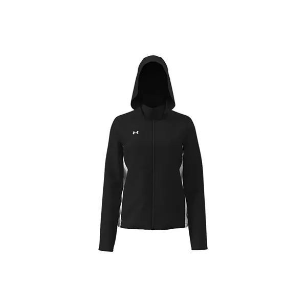 87% recycled polyester, 13% elastane;Lightweight stretch woven fabric (161g) allows unrestricted movement; Ecostorm technology repels water during light rain; Classic track silhouette with full zip and packable hood; Right chest logo;