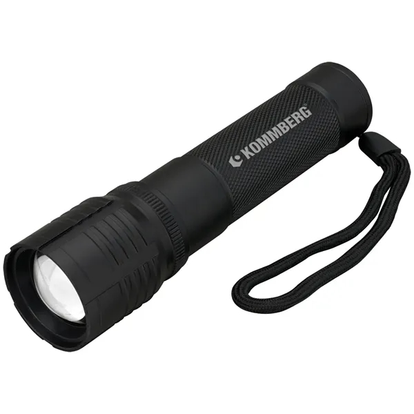Output: up to 500 lumens (front) and 200 lumens (barrel) Aluminum body Bulb Type: 10W P50 (front) and 3W COB (barrel) Function button switches between 4 modes: high (front), low (front), strobe (front) and turn on COB (barrel) Approx 8 hours of run time (high); 12 hours (low); 10 hours (barrel) Approx 4 1/2 hours of charge time Features an adjustable light beam by push/pull focusing action Includes 1 x 18650 rechargeable battery, USB charging cable, and manual
