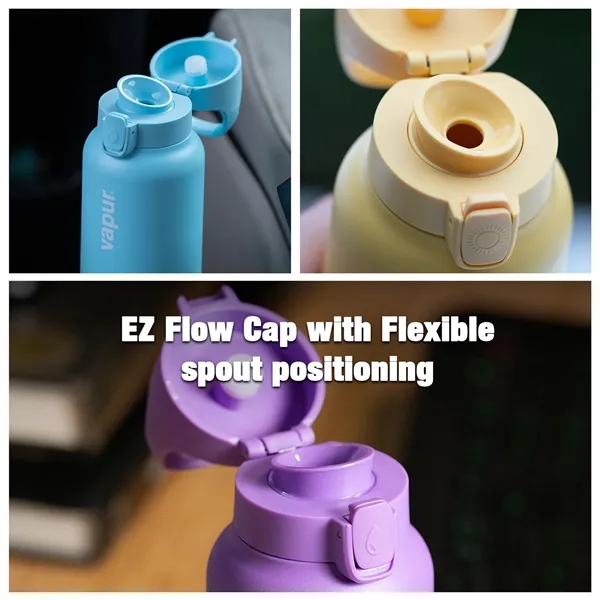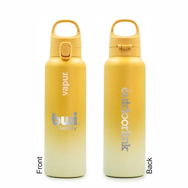 Vapur's Chill bottle in Sunbeam Yellow is equipped with an easy to use lid lock for zero leaks or spills and an EZ Flow cap with flexible spout positioning. Double wall insulation keeps beverages cold for 12 hours and beverages hot for 8 hours. Comes with a convenient clip, making it easy to attach to your purse, belt loop or pack. Dishwasher Safe with removable spout for optimum cleaning. Includes a filter basket that can fit charcoal filters for clean, great tasting water. Laser engraved. Boxed. Also available in Dusk Purple (#10326), Admiral Blue (#30181), & Seaside Blue (#10327).