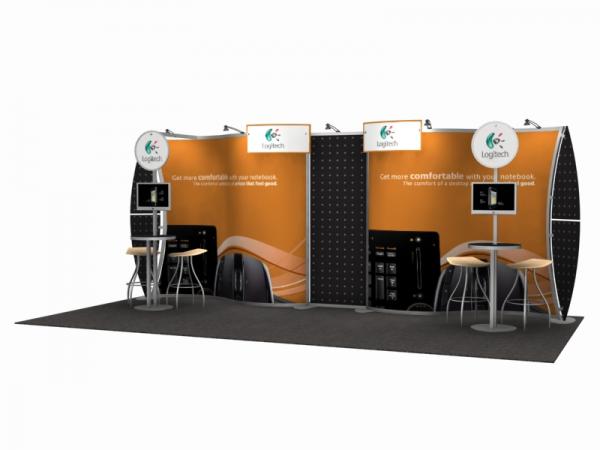 If you like curves, and who doesn’t like curves, then you’ll love the Magellan MOR. The Magellan MOR makes a bold statement at any trade show with its flowing lines and large format tension fabric graphic(s). Simply assemble the lightweight engineered aluminum frame with the quick assist knobs, unfold the fabric graphics, and attach them to the Velcro already on the frame. Options include workstations, headers, 9 wing colors, and monitor mounts. Choose from (6) 10 ft and 20 ft. kits.
