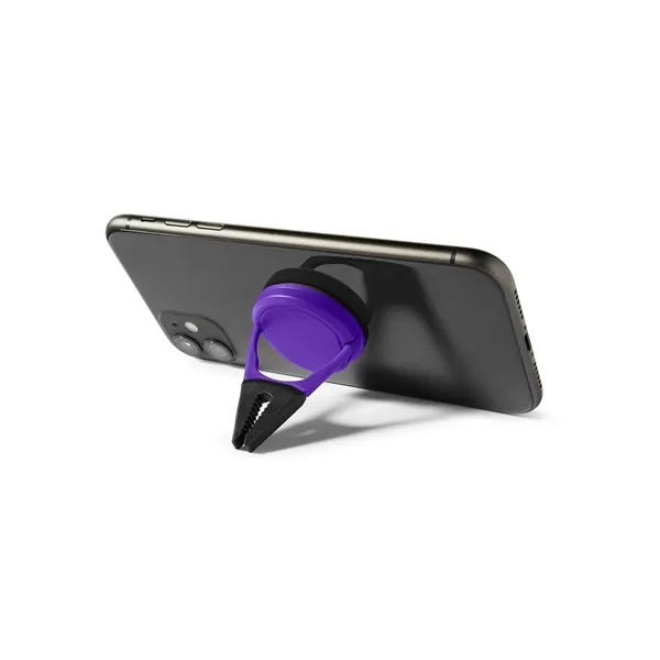 A Prime Line® Exclusive!** Made of ABS Plastic – insert into car vent – rotates 360 degrees. Can also serve as stand on table or desk. Includes removable adhesive back for placement on smartphone, cell phone or mobile device. Includes instructions.