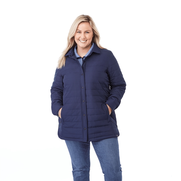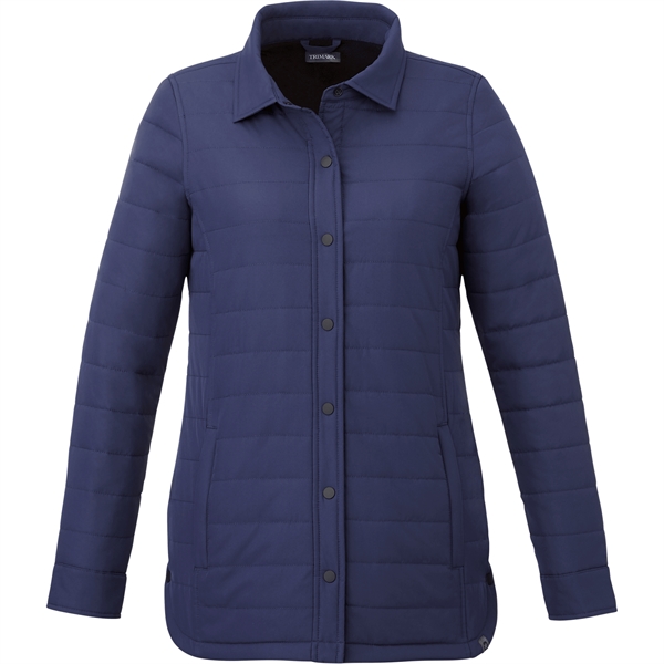 The women's Porter Eco Insulated Shacket combines superior style with lightweight warmth and comfort, thanks to a cozy microfleece body lining. Made from 40% recycled polyester, it's as eco-friendly as it is versatile. Adjustable snap cuffs so you can find the right fit and zippered front pockets to keep valuables safe. The shaped seams and tapered waist deliver a better fit, plus it has an on-trend crossover side hem. Features a shirt tail hem, and the articulated elbows and ergonomic sleeves let you move your arms freely.