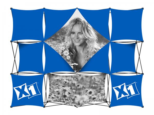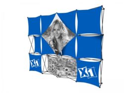 The X1 10ft 4×3 Popup Display is a versatile no tools stretch fabric pop-up display system. Available designs and custom display options bring excitement and flexibility to your exhibit. The X1 is easy to setup, ultra lightweight and portable and even easier to take down. Be off to your next appointment or relaxing while the competition is still sweating through the exhibit break down process. The collapsible pop-up frame uses magnetic connectors with the option of J-hook connectors for more custom or weight bearing displays. Stretch fabric graphics come pre-attached to the frame, and are easily changed out in the field! Kits come with graphics, frame and drawstring carry bag. Kits displayed are our most popular versions. Eight additional frames available plus custom options per request and hundreds of graphic configurations available.